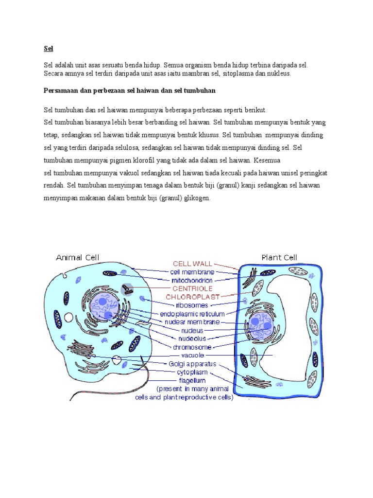 Sel boleh dibahagikan kepada 2 jenis iaitu sel haiwan dan sel tumbuhan. Hal tersebut lantas ikut berdampak pada karakteristik dua makhluk hidup contohnya, tumbuhan hanya bisa bergerak secara halus dan perlahan tapi tidak bisa berpindah. Perbezaan struktur sel tumbuhan dan sel haiwan bil struktur sel tumbuhan 1 dinding sel ada, dinding sel kuat dan mengalami penebalan terdiri dari selolusa( serat kayu) 2 mambran plasma ada 3 sitoplasma ada 4 5 6 7 8 9 10 11 12 13 nukleus mitokondria lisosom ribosom badan golgi. Namun apabila diamati dengan mikroskop elektron antara sel hewan dan sel tumbuhan memiliki perbedaan yang sangat mendasar. Struktur hewan dan tumbuhan memang cukup berbeda jauh. Lisosom, merupakan kantung kecil dengan membran tunggal. Sel hewan juga memiliki ukuran yang lebih kecil dibandingkan dengan sel tumbuhan. Terdapat perbedaan sel tumbuhan dan sel hewan yang bisa kita amati dari beberapa bagian dan fungsinya. Tujuan 1.mengidentifikasi struktur sel hewan dan tumbuhan 2.membedakan struktur sel hewan dan tumbuhan 3.menjelaskan laporan praktikum biologi umum i struktur sel hewan dan tumbuhan oleh nama nim kelompok asisten : Perbedaan paling menonjol antara sel tumbuhan dan sel hewan. Struktur, bentuk, fungsi, dinding sel, pigmen dan organel. Berikut ini adalah daftar dan penjelasan organel sel tersebut. Sedangkan hewan bisa bergerak lebih cepat dan aktif.