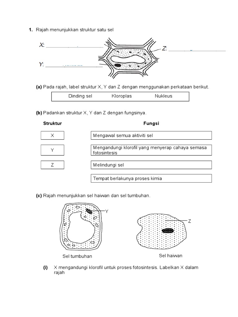 Ejercicio De Struktur Sel Haiwan Dan Sel Tumbuhan 2 from files.liveworksheets.com Sel haiwan dan tumbuhan adalah eukariota dan mempunyai beberapa perbezaan di antara keduanya. Sel haiwan sel tumbuhan fungsi struktur sel bahagian fungsi nukleus mengawal semua aktivti sel membran sel mengawal bahan keluar/masuk ke dalam sel sitolasma menyimpan bahan terlarut/ membolehkan proses kimia. Ukuran sel hewan identik dengan kecil dan ukuran sel tumbuhan lebih besar daripada sel. Malaysia syllabus pt3tingkatan 1 sainsfungsi:1. Tujuan 1.mengidentifikasi struktur sel hewan dan tumbuhan 2.membedakan struktur sel hewan dan tumbuhan 3.menjelaskan laporan praktikum biologi umum i struktur sel hewan dan tumbuhan oleh nama nim kelompok asisten : Namun apabila diamati dengan mikroskop elektron antara sel hewan dan sel tumbuhan memiliki perbedaan yang sangat mendasar. Sel merupakan unit asas bagi semua organisma. Dinding sel pada tumbuhan berfungsi untuk mempertahankan bentuk sel dan memberikan perlindungan terhadap sel.
